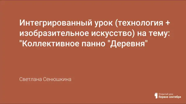 Знакомство с обликом русской деревни помогает глубже узнать и полюбить нашу Родину, а нетрадиционная форма урока повышает интерес учащихся к изучаемому, способствует активизации деятельности и лучшему усвоению материала. Это позволит детям раскрыть свои творческие способности через практическую работу на уроке. Результатом полученных знаний, умений и навыков по данной теме будет выставка панно "Деревня".