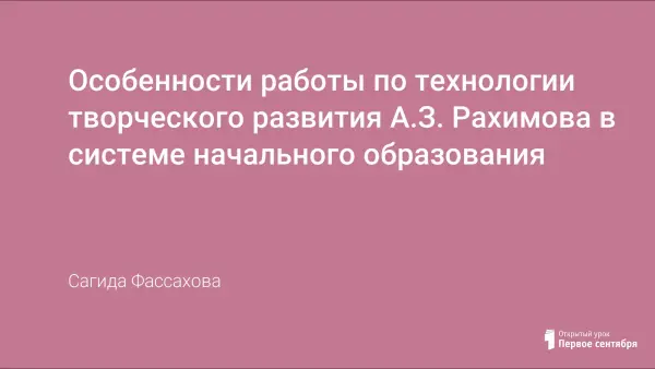 Целью А.З. Рахимова было творческое развитие детей, то есть сам ученик, а методология развивающегося обучения стала первичным средством достижения главной цели.