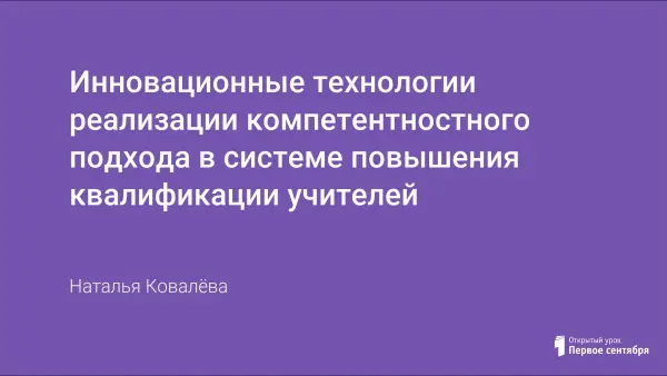 В статье представлен опыт применения инновационных технологий реализации компетентностного подхода в системе повышения квалификации учителей. Современный учитель - это тот учитель, который способен успешно реализовать компетентностный подход в процессе образования подрастающего поколения. Поэтому сегодня очень актуальным становится поиск таких форм повышения квалификации и их сочетаний, которые в максимальной степени будут способствовать становлению ключевых компетенций педагогов.