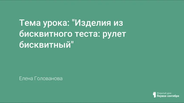 Урок знакомит учащихся с технологией приготовления рулета из бисквитного теста. В материалах к уроку представлены демонстрационные материалы: список учебной литературы, технологические карты, сборник рецептов.