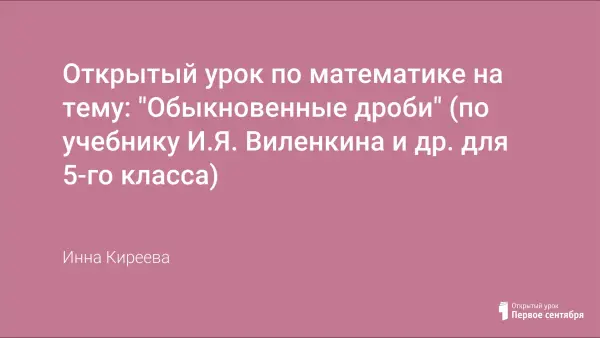 Открытый урок по математике на тему: "Обыкновенные дроби" (по учебнику И.Я. Виленкина и др. для 5-го класса)