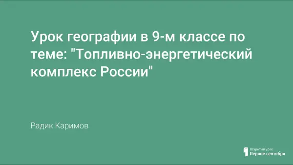 Урок «Топливно-энергетический комплекс России» занимает исключительно важное место в системе уроков по географии России. Он является вступительным в теме «Топливно-энергетический комплекс» и подготавливает учеников к подробному изучению особенностей угольной, нефтяной и газовой промышленности.