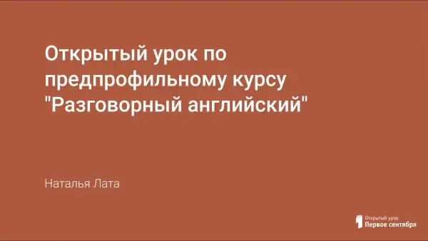 Открытый урок по предпрофильному курсу: «Разговорный английский» является заключительным семинаром авторизованной программы по электронному учебнику Игнатовой Т.