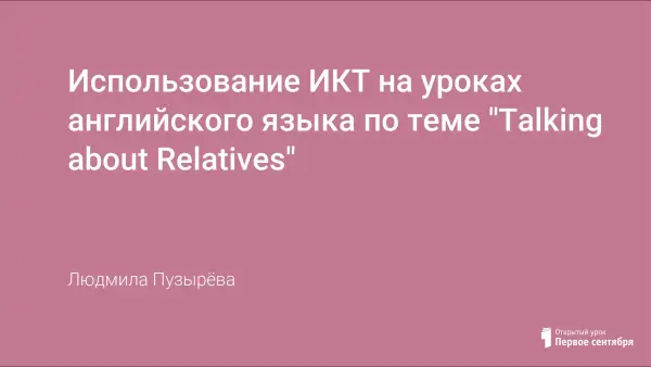Цель данной работы – показать, какие простейшие электронные упражнения можно готовить к урокам иностранного языка, не затрачивая при этом много времени на их подготовку. В качестве примера сделана презентация по теме “Talking about Relatives” к учебнику М.З. Биболетовой “Enjoy English 5-6”.