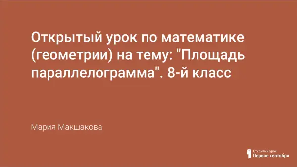 Урок геометрии в 8-м классе повторяет материал, изученный ранее по темам "Площадь прямоугольника". Учащиеся учат решать задачи на нахождение площади паралелограмма.