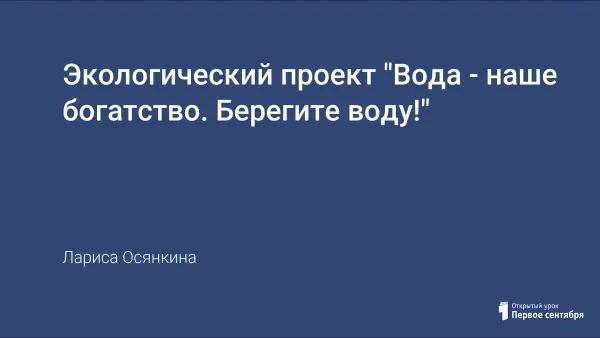 Цель проекта: обеспечение условий для: формирования умений учащихся наблюдать, сравнивать, делать выводы; закрепления понимания учащихся о значении экологически чистой воды для жизни всего живого на Земле.