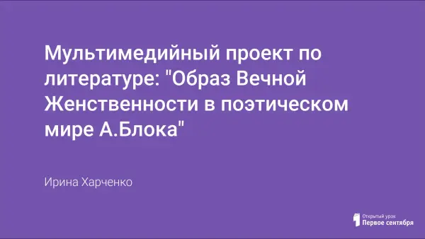 Цели проекта: постижение многогранного и многоцветного поэтического мира стихотворений А. Блока; создание речевого художественного видеообраза стихотворений; овладение приемами обработки информации; совершенствование навыков компьютерного дизайна.