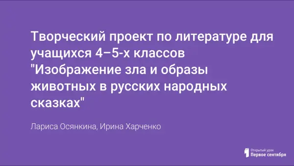 Творческий проект по литературе для учащихся 4–5-х классов "Изображение зла и образы животных в русских народных сказках"