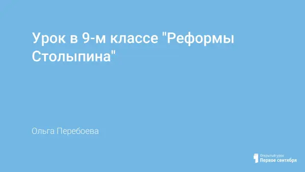 На уроке рассмотрены цели и основные мероприятия аграрной реформы П.А. Столыпина. Столыпин понимал, что результаты его трудов скажутся далеко не скоро. "Дайте государству 20 лет покоя внутреннего и внешнего, и вы не узнаете нынешней России". Однако его начинания не имели ни широкой социальной, ни политической поддержки. Столыпин стал фактически реформатором-одиночкой.