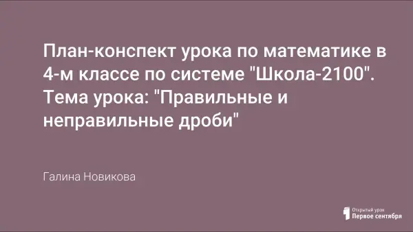 Цели урока: дать детям представление о правильных и неправильных дробях, учить сравнивать любую дробь с единицей; сформулировать определения правильных и неправильных дробей, учить делать маленькие математические "открытия" новых терминов; выработать умение ставить цели деятельности, составлять план, подводить итог, оценивать результат.