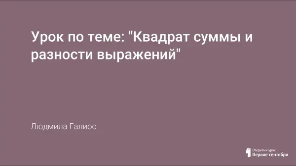 При рассмотрении темы "Квадрат суммы и разности" особое внимание следует обратить на чтение выражений, так как учащимся постоянно приходится в данной теме переходить от формул к их словесному выражению и наоборот. Потому этому на уроке уделяется большое место как в устной работе, так и при объяснении нового материала. Преобразование целых выражений по формулам применяется при решении уравнений, нахождение значений выражений, выполнении ряда вычислений рациональным способом, поэтому на уроке необходимо было показать значимость этих формул. Любая формула имеет свою историю, потому на уроке было показан вывод формулы с использованием площадей квадратов со сторонами а, в и (а+в) и прямоугольников со сторонами а и в, была дана историческая справка.