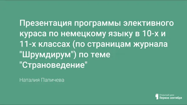 Данный урок направлен на развитие билингвальной компетенции учащихся 11-го класса школы с углубленным изучением английского языка. Урок проводится учителями английского и немецкого языков (английский - первый иностранный язык и немецкий - второй иностранный язык) в кабинете информатики с использованием информационных технологий и метода проектов. В основу урока положен программный материал УМК Богородицкой В.Н., Хрусталевой Л.В. по английскому языку для 10-11-го класса школ с углубленным изучением английского языка, УМК Гальсковой Н.Д. "Und nun Deutsch" для учащихся 11-го класса, изучающих немецкий язык в качестве второго иностранного языка.