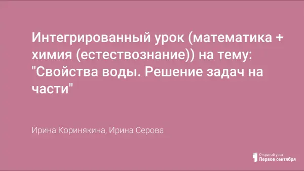 Интегрированный урок (математика + химия (естествознание)) на тему: "Свойства воды. Решение задач на части"