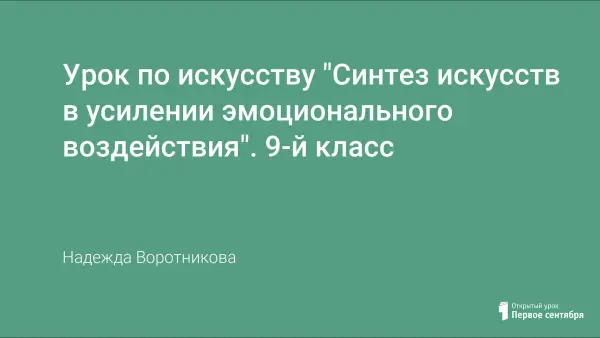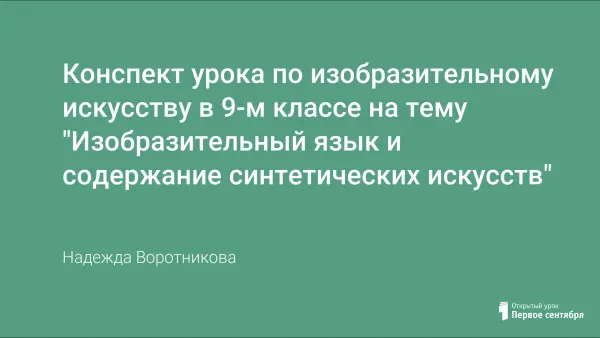 Сегодняшний человек существует в насыщенном мире и постоянно изменяющемся пространстве визуальных искусств. Именно синтетические искусства, непосредственно происходящие от изобразительных искусств, являются господствующими во всей системе современной культуры. Формирование оценочных критериев произведений синтетических видов искусств - одна из основных задач этого урока.