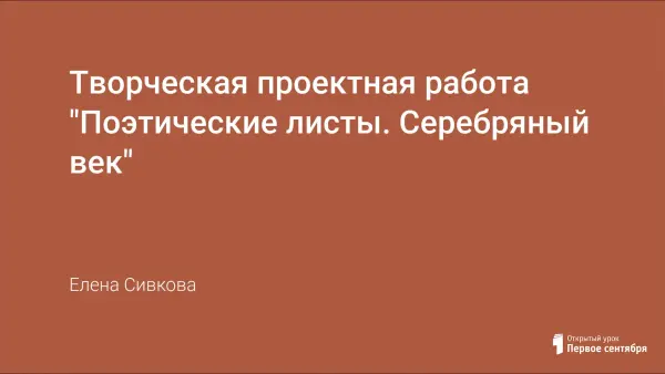 Представлен опыт создания проекта: поэтические листы о поэтах Серебряного века. На каждом – портрет поэта, высказывание, отражающее особенности его творчества и личности, сведения о биографии и творческом пути, стихотворение-"визитка". Описание листов можно использовать как слово учителя или сообщение ученика. Поэтические листы – это наглядное пособие на уроках литературы, оформление кабинета. Они, безусловно, помогут школьникам закрепить в памяти образ поэтов Серебряного века.