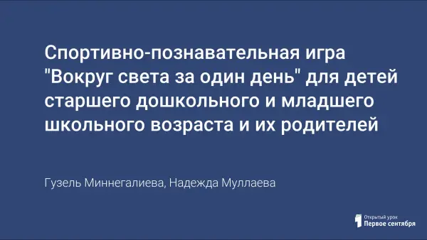 Спортивно-познавательная игра "Вокруг света за один день" - одна из форм активного отдыха детей и их родителей. Она нацелена на высокую двигательную активность, воспитание положительных эмоций, свободное, непринужденное взаимопонимание. Игра развивает у детей сообразительность, смекалку, воображение, творчество, вносит доверительность, теплоту во взаимоотношения между детьми и родителями, способствует созданию эмоционального благополучия ребенка дома и среди сверстников.