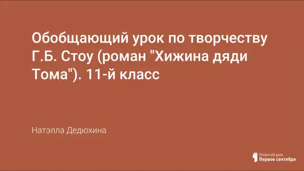 Предложенный урок-дискуссия о творчестве Г.Б. Стоу и проблеме расовой дискриминации имел большой образовательный эффект из-за удачного сочетания актуальной темы и новизны подачи материала. Все герои и их монологи - плод совместного творчества учащихся и учителя. Такой вид работы вовлек учащихся в процесс самообразования, изучения страноведения и способствовал их эстетическому воспитанию.