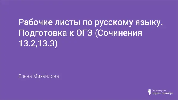 Рабочий лист для подготовки к ОГЭ – эффективный инструмент современного урока, который используется учащимися при подготовке к экзамену и при выполнении домашней работы самостоятельно. В нем лаконично собрана самая важная информация к заданиям 13.2 и 13.3 (сочинение), что позволяет легче усвоить материал и успешно сдать экзамен. Подобных рабочих листов нет, и я надеюсь, что эта разработка облегчит труд учителя по подготовке к ОГЭ.