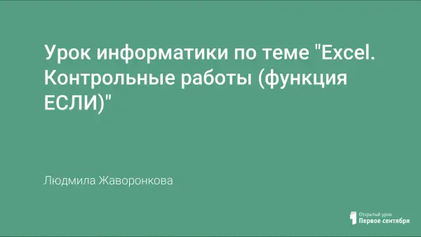 Назначение разработки: контроль знаний учащихся по теме «Функция ЕСЛИ». Нужно решить задачу путём построения электронной таблицы. Исходные данные для заполнения таблицы подобрать самостоятельно (не менее 10 строк).