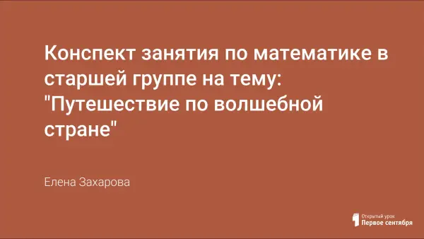 Данное занятие представлено в форме необычного путешествия. Дети помогают жителям "Волшебной страны" освободиться от чар злых волшебников. На занятии используются игровые упражнения, которые формируют у детей мыслительные операции (анализ, синтез, сравнение, обобщение, классификацию). Создание игровой проблемной ситуации помогает воспитывать интерес к математическим занятиям.