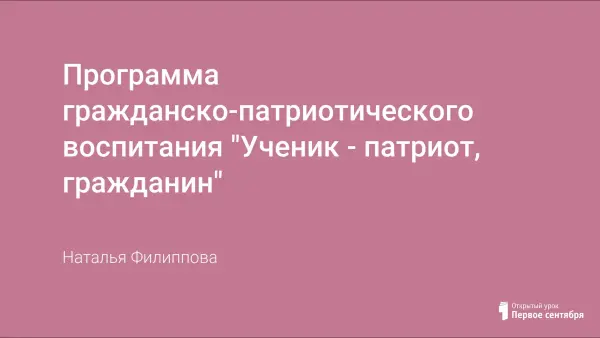 Учителям, классным руководителям и воспитателям предлагается программа гражданско-патриотического воспитания для 6-9 классов. Программа состоит из 5 блоков и рассчитана на 4 года. Материал представлен в виде пояснительной записки и планирования.
