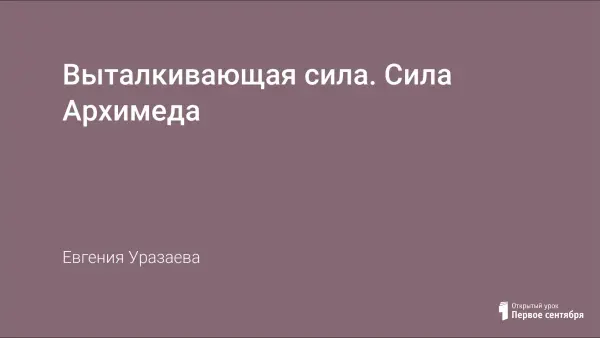 Цель урока: обнаружить наличие силы, выталкивающей тело из жидкости (газа) и показать зависимость силы Архимеда от объема погруженной части тела и плотности жидкости.
