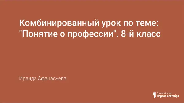 Комбинированный урок в 8-м классе по теме: "Понятие о профессии" формирует у учащихся представление о выборе профессии.