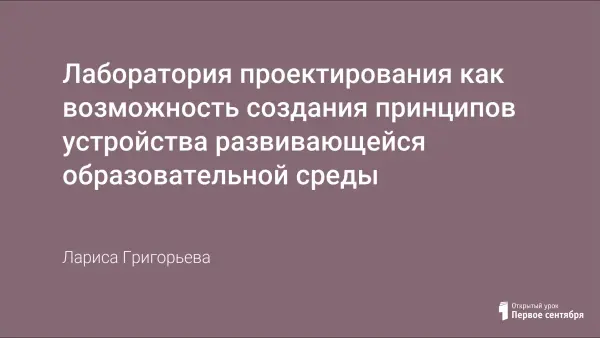 Проект "лаборатория проектирования" знакомит с принципами и устройством такой образовательной среды, которая создает возможность строить механизм развития образовательного субъекта (педагогов, учащихся и всего образовательного учреждения в целом).
