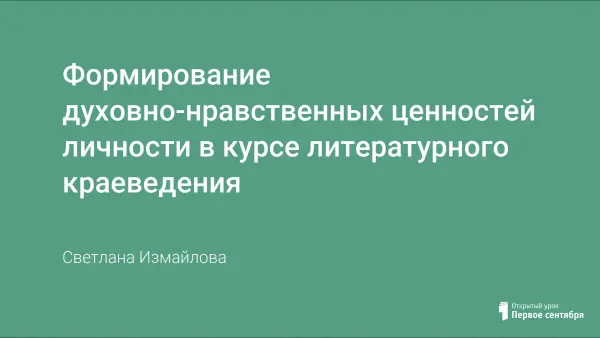 В докладе освещается работа с новым пластом нашей литературы, в котором утверждаются общечеловеческие ценности. Учитель делится опытом организации работы по одной из тем курса литературного краеведения, акцентируя внимание на том, какие технологии, методы и приёмы, формы контроля использует при этом.