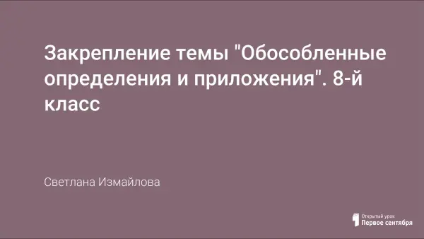 В ходе урока учащиеся закрепляют умения находить в тексте обособленные определения и приложения, пунктуационные навыки, повторяют орфографический материал, учатся выступать публично. На уроке используются следующие методические приемы: работа с текстом, обмен мнениями, тренировочные упражнения, работа со словарями, исследование, опрос, ответы на вопросы, слушание.