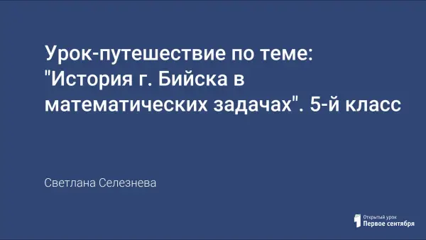 Данный материал представлен в форме урока-путешествия "История г. Бийска в математических задачах" для учащихся 5-го класса. Урок рассчитан на завершение темы "Обыкновенные дроби". Содержит задачи основных типов: на нахождение части от целого и целого по его части, на нахождение площади, на составление уравнения, на "движение". Компьютер на уроке несёт обзорную информацию. Ученики "путешествуют по старому городу", нажимая на кнопку "Page Down" компьютера. В ходе путешествия практическое применение математики помогает делать новые открытия.