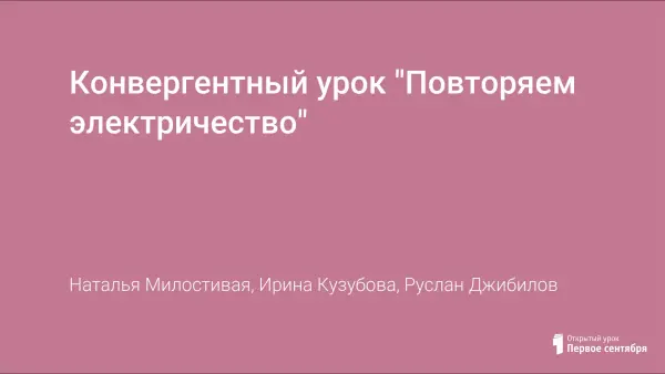 Конвергентный урок « Повторяем электричество» (физика, информатика, русский язык) имеет своей целью обеспечить повторение основных понятий электричества посредством выявления физической сущности природных явлений; показать родство русского языка, живописи, физики и информатики как разных сторон познания единого мира.