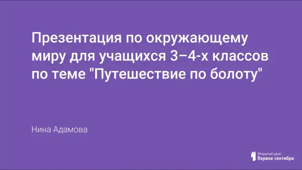 Презентацию можно использовать при изучении темы по окружающему миру "Болото - природная экосистема". Она познакомит учащихся с растительным миром болот. Они узнают, какие растения растут на болоте и какую они пользу приносят человеку. Данный материал можно использовать и на дополнительных занятиях по окружающему миру.