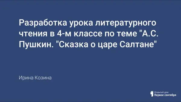 Цели урока: обобщая материал литературного анализа сказки, наработанный в цикле уроков по теме, решить проблемный вопрос: сказка Пушкина, написанная на народной основе, - авторская или обработка народной сказки; формировать у детей навыки литературной исследовательской работы, умение строить предположения и доказывать; развивать умения пересказывать фрагменты произведения с включением цитат, определять качества персонажей, раскрывающихся в их поступках; воспитывать любовь к поэтическому слову.