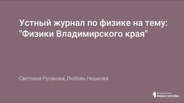 Устный журнал по физике на тему: "Физики Владимирского края"