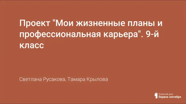 Проект "Мои жизненные планы и профессиональная карьера". 9-й класс