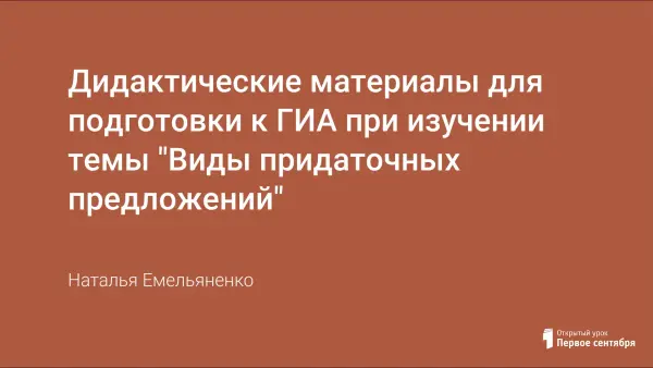 Перед учителями, работающими в 9-х классах, стоит трудная задача: изучить достаточно объемный и сложный материал по теме «Сложное предложение» и подготовить учащихся к сдаче ГИА. Если дополнительных часов на подготовку к ГИА не выделено, то приходится совмещать и изучение новых тем, и разбор заданий ГИА. В статье представлен дидактический материал, дающий возможность учителям при изучении темы «Виды придаточных предложений» проводить подготовку к ГИА.