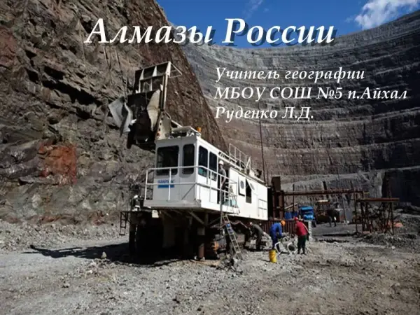 Цель урока: создание условий для осознания и осмысления знаний об алмазодобывающей промышленности, ее роли и значении в экономике страны.