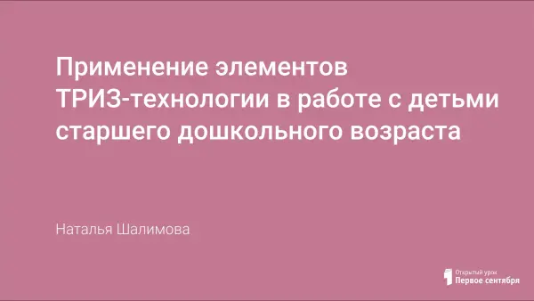 Применение элементов ТРИЗ-технологии в работе с детьми старшего дошкольного возраста
