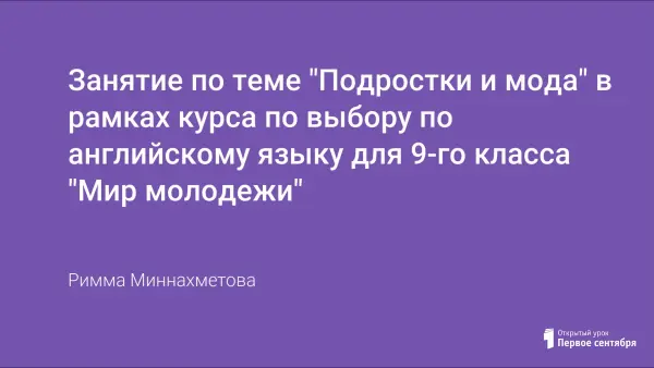 Занятие по теме "Подростки и мода" в рамках курса по выбору по английскому языку для 9-го класса "Мир молодежи"