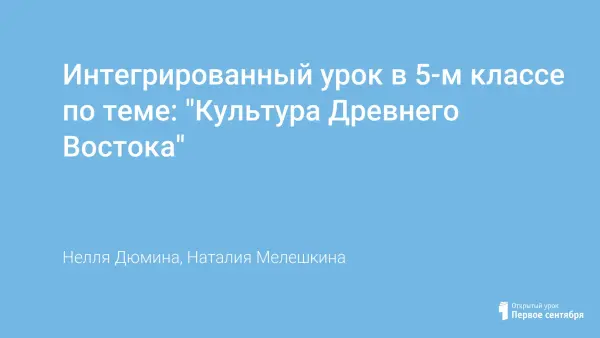 Основанием для проведения данного интегрированного урока является единство тем в предметах история Древнего мира и изобразительное искусство. Цель урока - обобщить полученные знания в процессе изучения темы, найти общее и различное в развитии культуры народов стран Востока, показать вклад народов Древнего Востока в мировую культуру, способствовать развитию творческих способностей учащихся, воспитывать чувства любви к прекрасному.