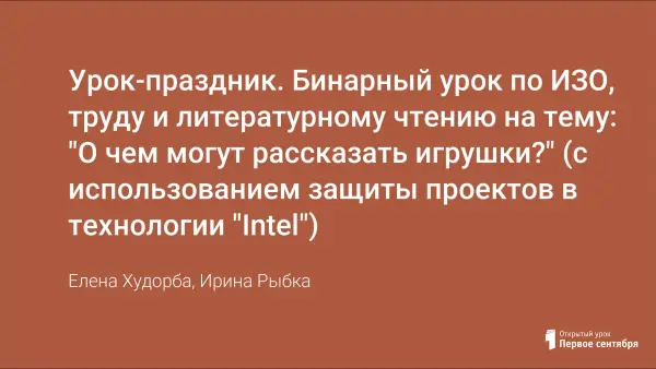 Урок-праздник. Бинарный урок по ИЗО, труду и литературному чтению на тему: "О чем могут рассказать игрушки?" (с использованием защиты проектов в технологии "Intel")