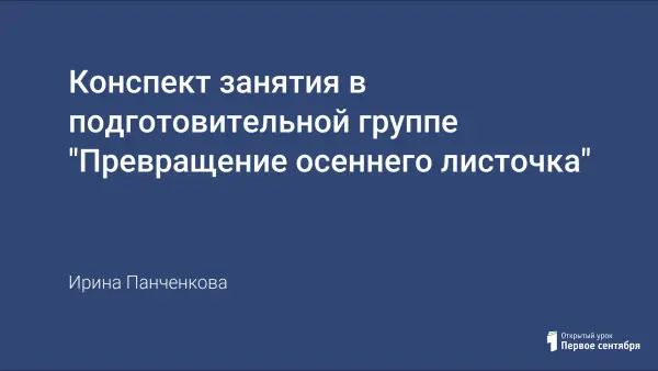 На занятии дети учатся выполнять работу из осенних листьев, развивая при этом графические и композиционные навыки, творческое воображение, чувство цвета, мелкую моторику рук и двигательную координацию, расслабление рук по контрасту с напряжением.