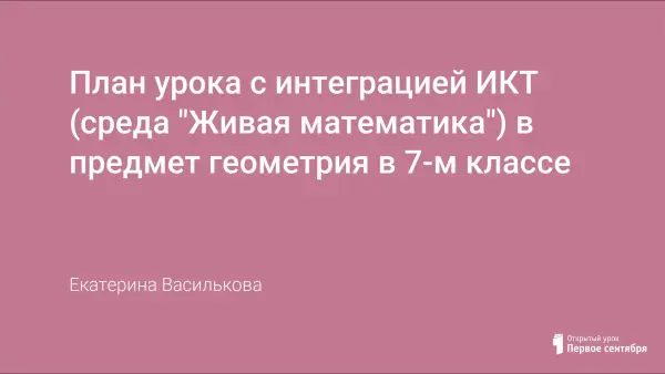 В настоящее время в предметы математического цикла активно внедряются информационно-компьютерные технологии. Данный план представляет собой один из возможных вариантов использования ИКТ на самом первом уроке геометрии в 7-м классе.