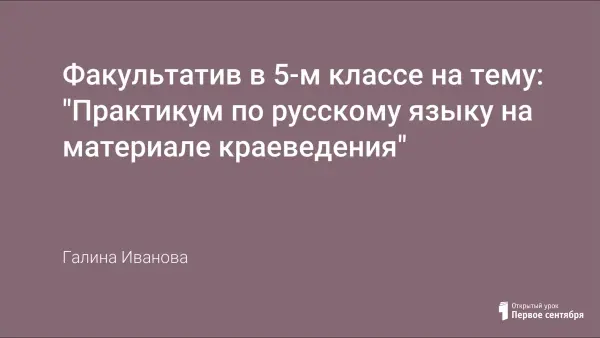 Факультатив в 5-м классе по русскому языку знакомит учащихся с материалами общего краеведения; показывает, что Томская область - область развитой промышленности, сельского хозяйства и подготовки научных, инженерных, медицинских и педагогических кадров.