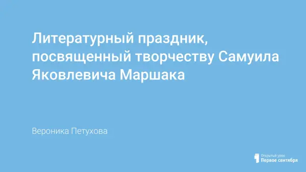 Цели и задачи урока: расширить у детей объём знаний о С.Я.Маршаке как о детском писателе, закрепить умение узнавать произведения по отрывку, умение инсценировать произведение, выразительно читать диалог действующих лиц; углубить знания детей о разных сторонах творчества Маршака (составление загадок, переводы, сказки). Воспитывать любовь и уважение к творчеству писателя, развивать творческую активность.