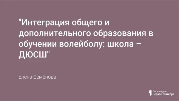 "Интеграция общего и дополнительного образования в обучении волейболу: школа – ДЮСШ"