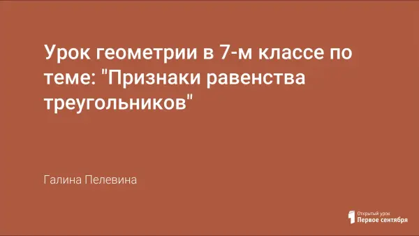 Урок обобщает знания учащихся по признакам равенства треугольников, развивает навыки индивидуальной и групповой работы на уроках.