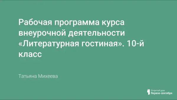 Представлена Рабочая программа курса внеурочной деятельности «Литературная гостиная» для учащихся 10-х классов.