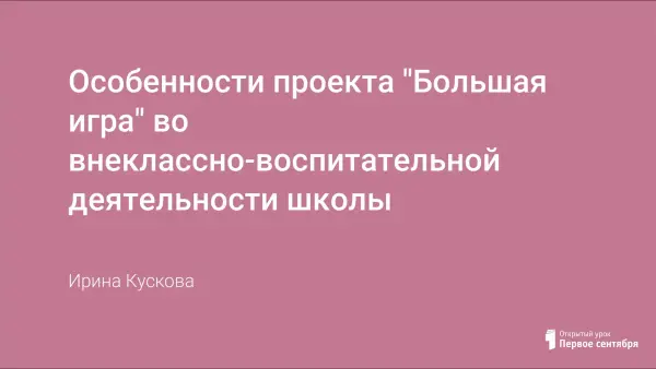 В данной статье описаны особенности Большой игры, как одной из форм психолого-педагогической работы с учащимися. Приведен сценарий Большой игры на тему: "Празднование юбилея г. Братска в МОУ "СОШ № 9", даны практические рекомендации по применению данной формы работы с учащимися, представлены примеры оформления проспекта игры и заданий групп.